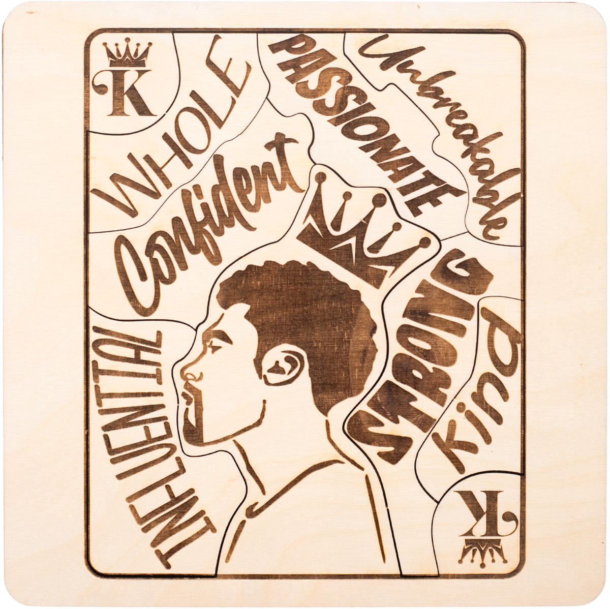 Command the room—and your spirit—with the I Am King Affirmation Puzzle, a striking wooden piece designed in the style of a regal playing card. With a powerful profile and crown held high, this puzzle reflects the strength and grace of a man who leads with heart and purpose.
