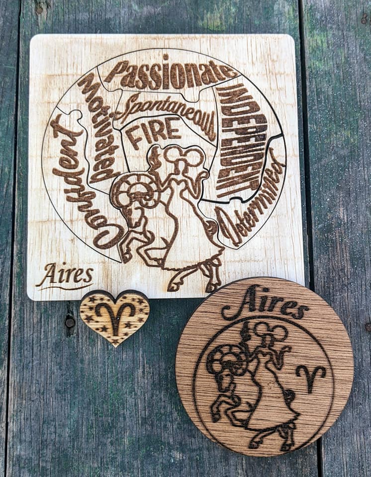 The Zodiac Puzzle Bundle comes with a Zodiac Affirmations Puzzle and stand, matching Magnet, and heart shaped, wooden Lapel Pin. Manifest the good in you and represent for your sign!