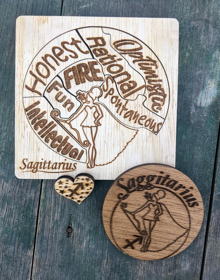 The Zodiac Puzzle Bundle comes with a Zodiac Affirmations Puzzle and stand, matching Magnet, and heart shaped, wooden Lapel Pin. Manifest the good in you and represent for your sign!